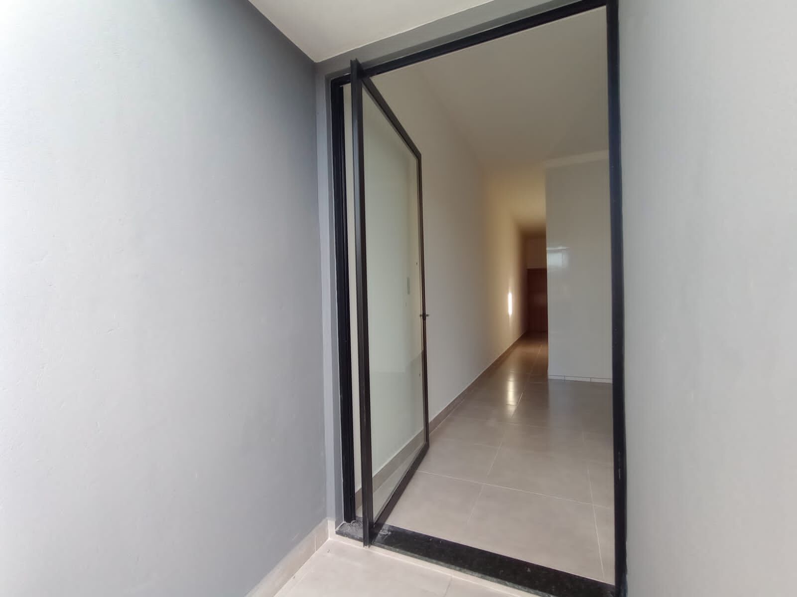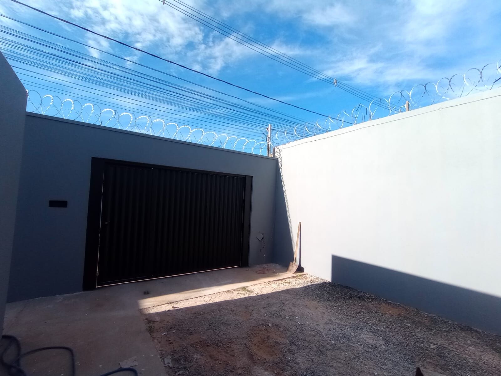 Entrada individual para cada residência com portão basculante
