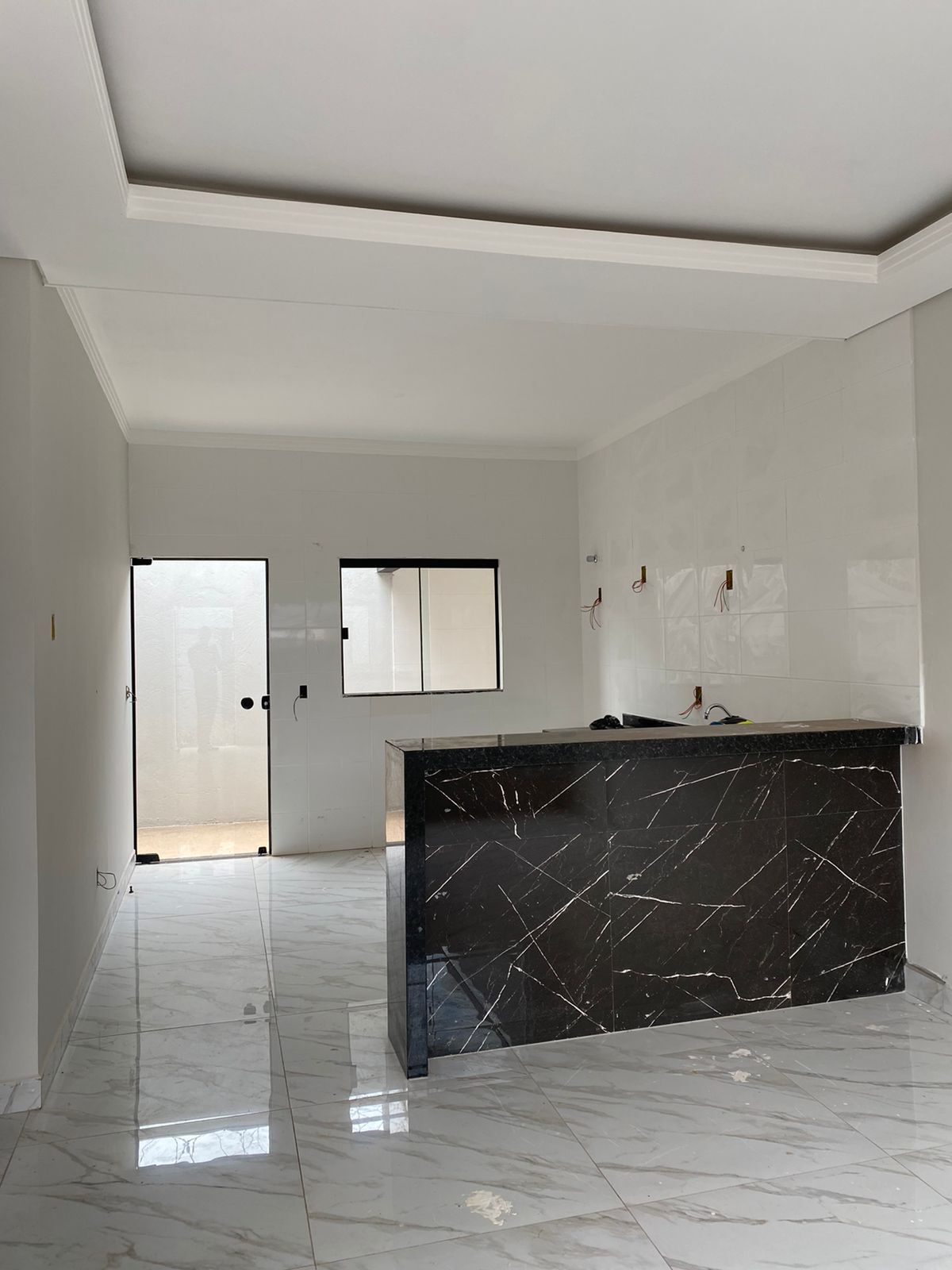 Oportunidade, casa de 2 quartos sendo 1 suite, banheiro social, sala com sanca, moldura de gesso na casa inteira, cozinha com bancada de granito, janela de blindex grande, casa bem distribuida e bem acabada, piso porcelanato, área de serviço coberta, garagem para 2 carros.