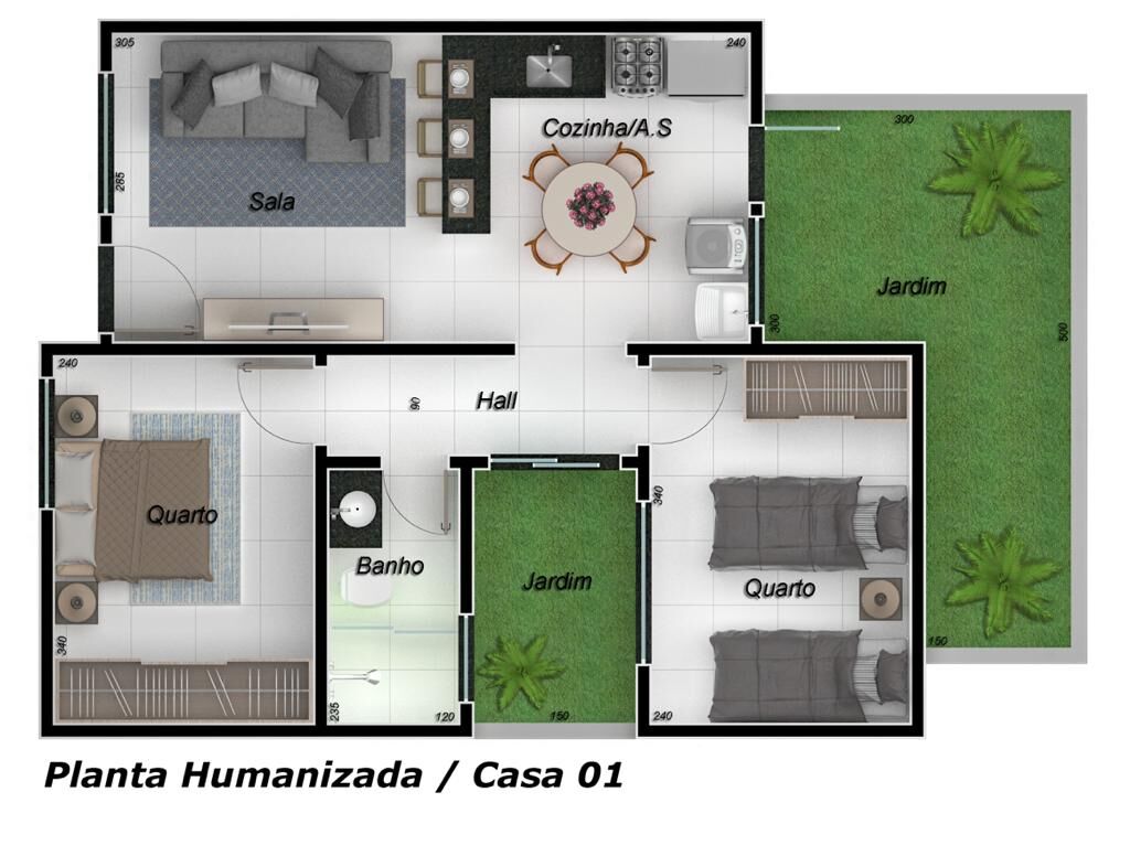 Casas localizadas no Bairro Jardim Holanda, com 2 quartos, sala em dois ambientes, cozinha com pias e bancadas em granito, área de serviço e banheiro social. Área externa.