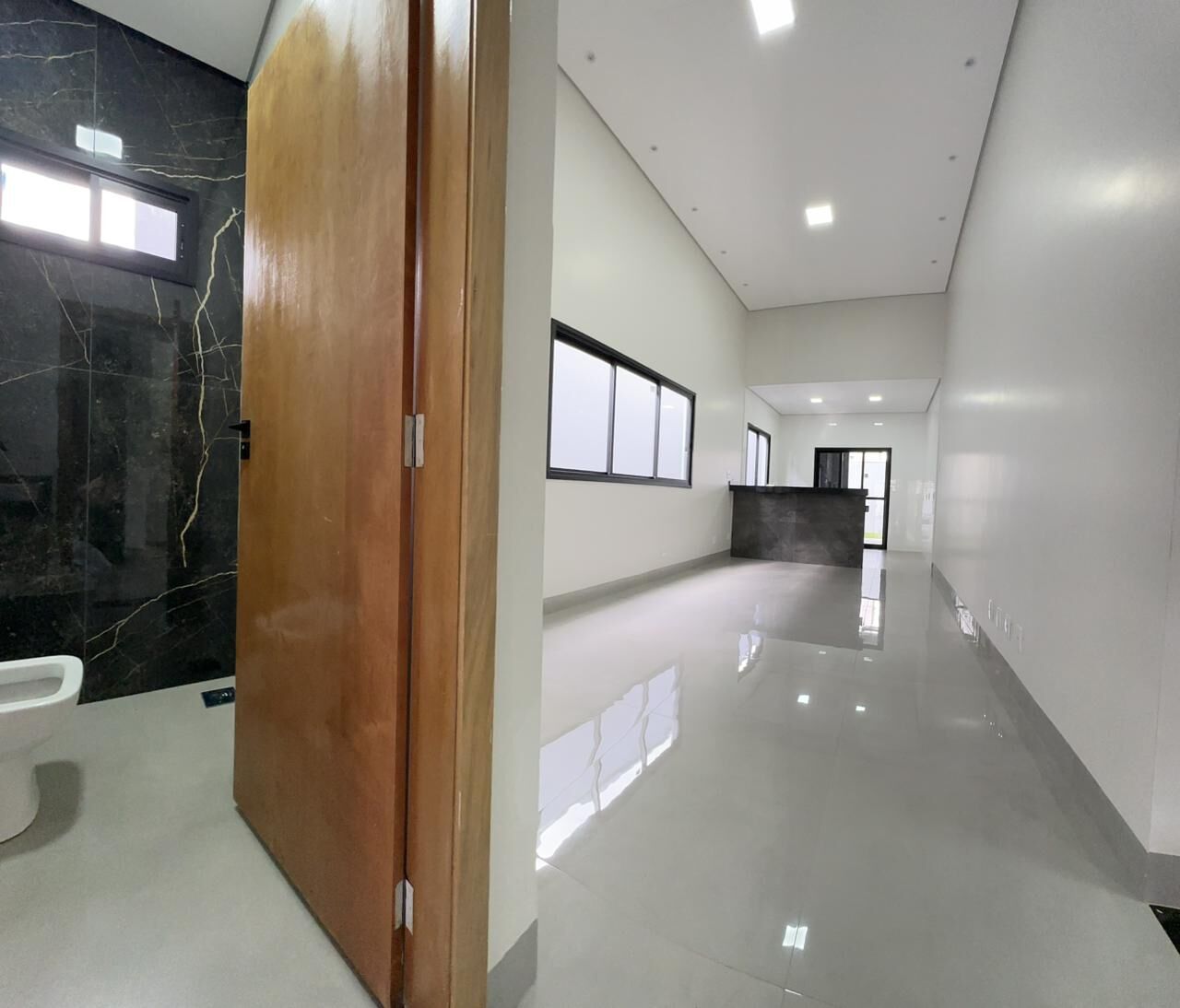 3 quartos sendo quarto 1 suíte com 2 chuveiros, 1 quarto semi suíte, closet, sala de estar ampla, sala de jantar, cozinha com bancada em granito e revestimento, lavabo, DML, área de serviço fechada com porta de blindex, espaço gourmet com revestimento em porcelanato.