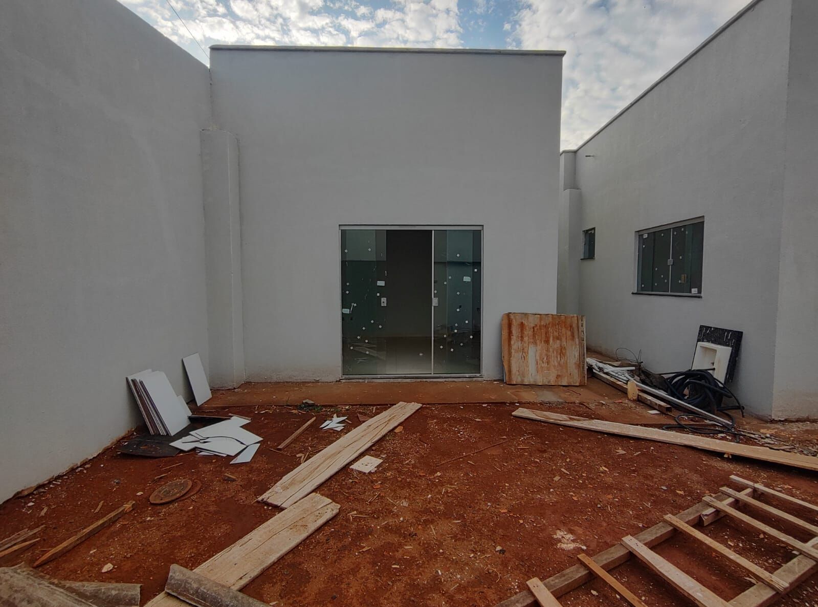 Casa nova em fase final de acabamento localizada no bairro Luizote, com portas e janelas em blindex, sala ampla com teto rebaixado em gesso, banheiro social com pia em pedra verde ubatuba, jardim de inverno, cozinha com bancada e pia em pedra verde ubatuba e teto rebaixado com sanca de gesso, 2 quartos sendo um suíte, lavanderia e 2 vagas de garagem.