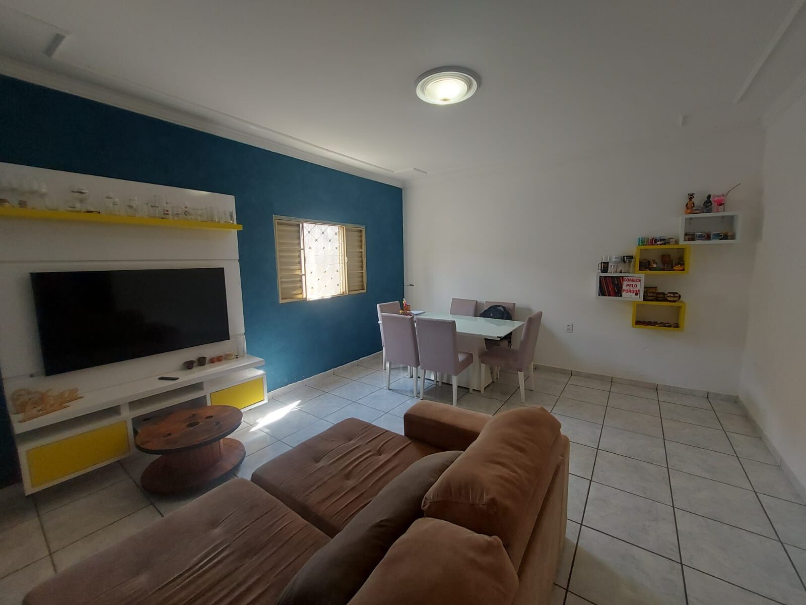 Casa usada sozinha no terreno com 3 quartos amplos, sala ampla com sanca de gesso e, paredes revestidas no grafiato, copa, cozinha estilo americana com revestimento até o teto, banheiro social com box, lavanderia coberta, varanda com telhas americanas e vigotas de madeira. Amplo espaço no fundo para ampliação com quintal com arvores frutíferas produzindo (jabuticabeira, cajá-manga, acerola, etc.).