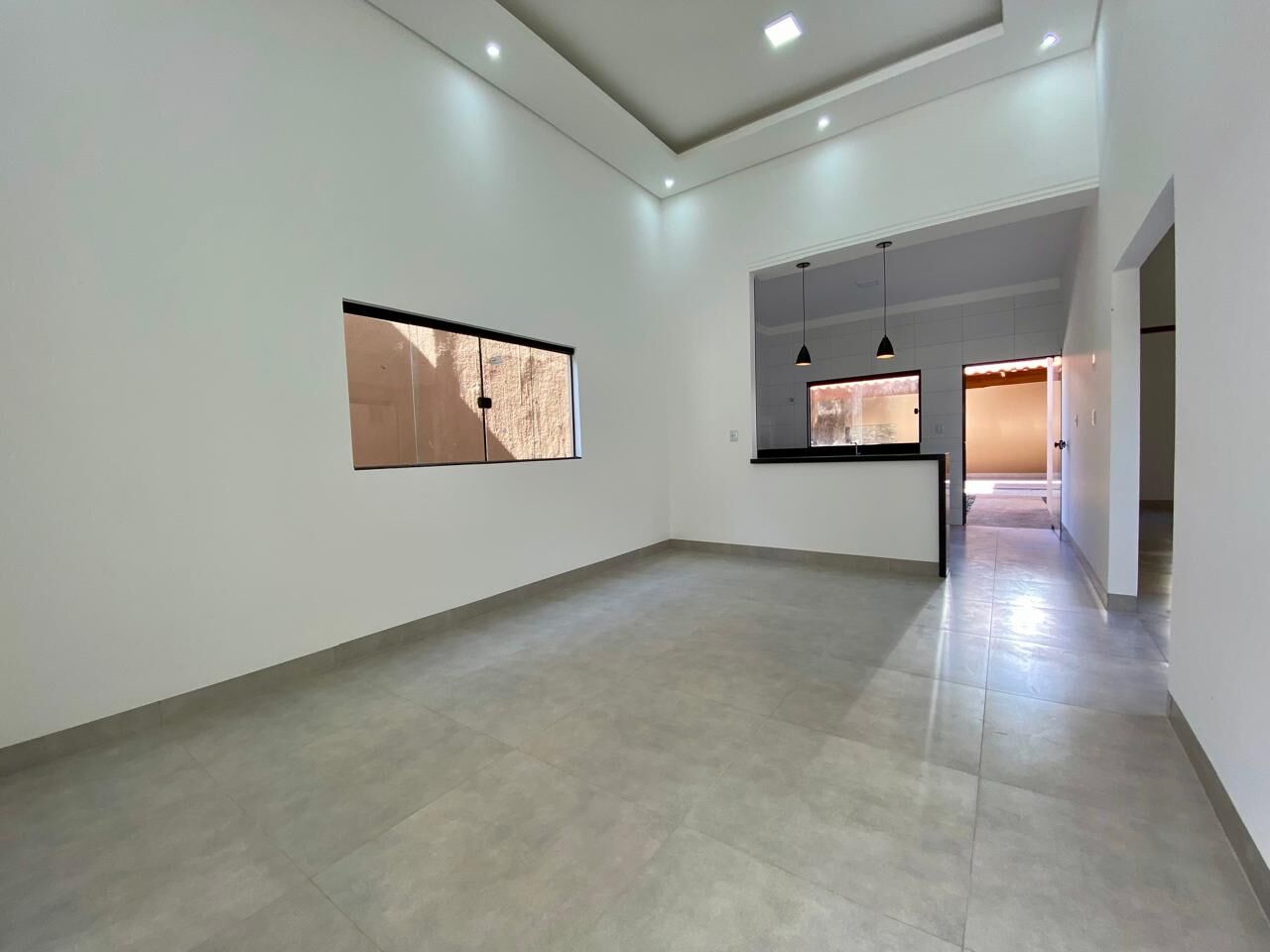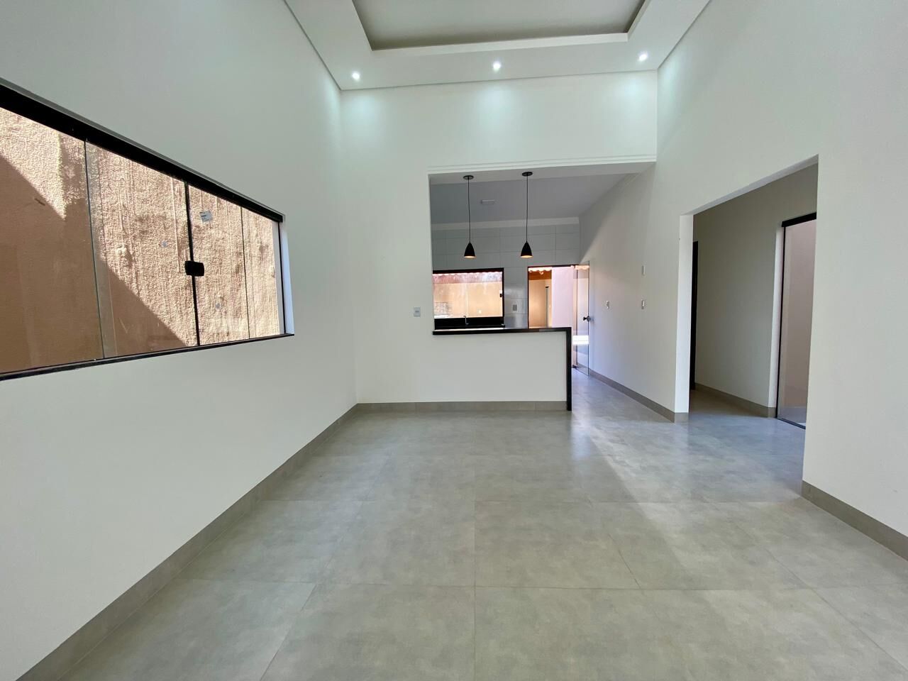 Casa nova com excelente acabamento localizada no bairro Jardim Brasília com 3 quartos sendo 1 suíte, sala ampla em dois ambientes com sanca de gesso, cozinha estilo americana com revestimento até o teto e luz de led, pia e bancada em granito e cuba em inox, banheiro social, área de serviço coberta e espaço gourmet com churrasqueira a carvão e pia.